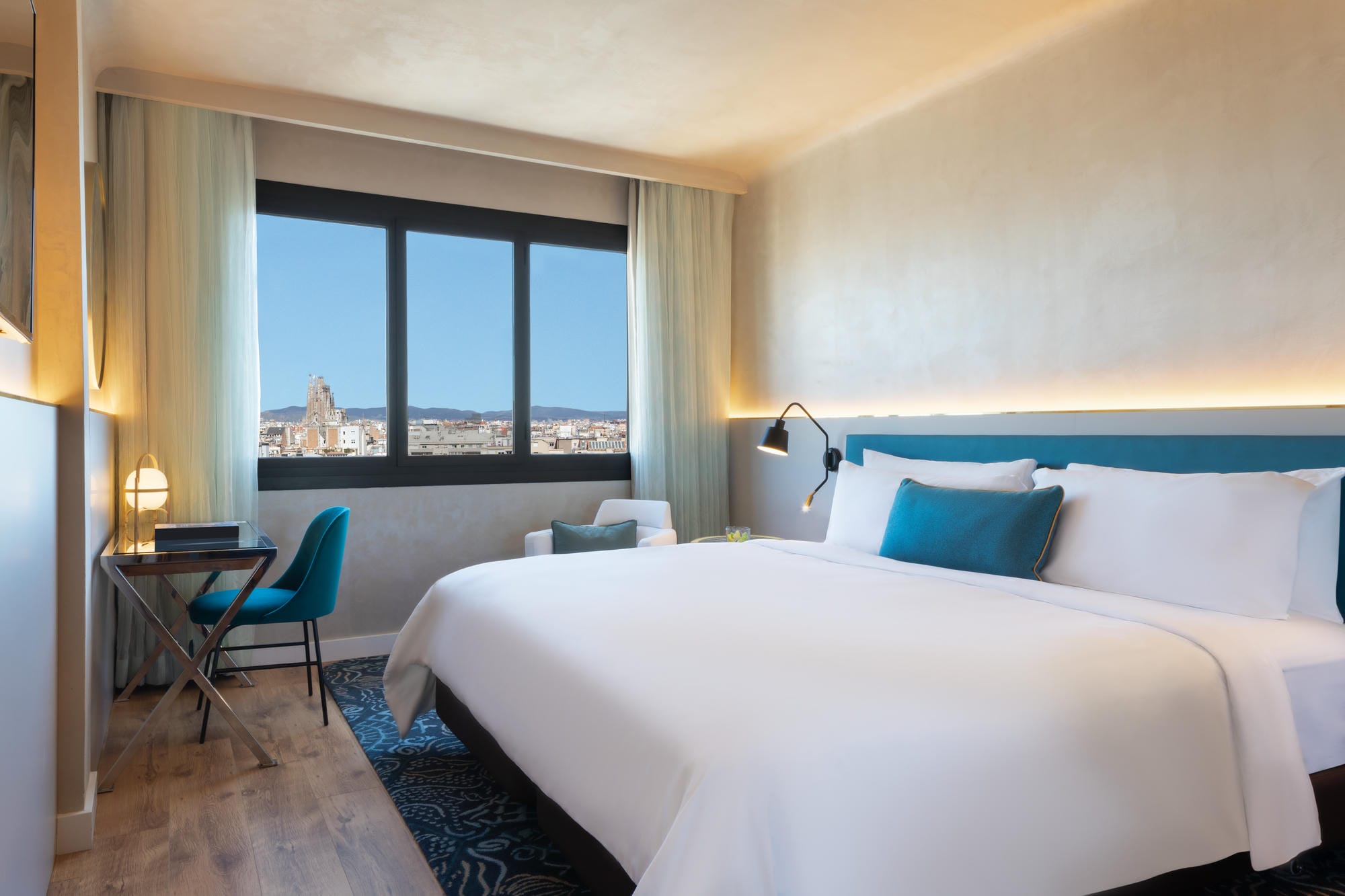 酒店拥有211间装饰典雅的客房和套房,每一间都精心设计,为宾客提供一个远离城市喧嚣的宁静避风港。现代家具、天然材质以及源自当地的设计元素,共同打造出一个既适合休闲度假又适合商务出行的温馨环境。许多客房还享有扩展区独特的屋顶景观,让宾客从空中领略巴塞罗那的建筑韵律。
