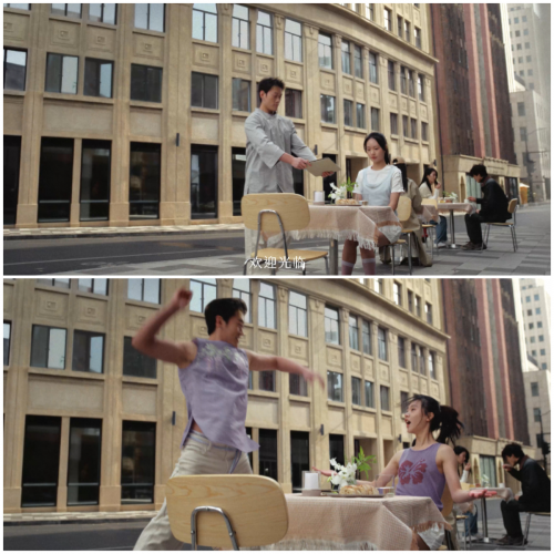 其中,两位舞者服装动态变色镜头成为最大执行挑战。团队通过鱼线精准操控完成紫色瞬间展开效果,摄影、演员与道具组多次磨合至毫米级精度,最终实现一镜到位。