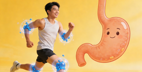 用通俗的话讲,这款产品实现了“快速通过,精准吸收”——成分不在胃里过多停留,进入体内后迅速被靶向识别,关节靶向富集率可达89.7%。成分走了“高速通道”,自然大大减少了在胃部“堵车”引发不适的几率。
