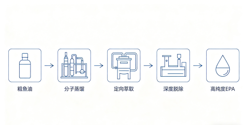 专业细节解释: 从粗鱼油到97%高纯度EPA,需要经过分子蒸馏、定向萃取、杂质脱除等多道工序。普通鱼油采用传统分子蒸馏,纯度上限约70%。而高效定向萃取技术可以精确分离EPA和DHA,实现单一成分的富集。鱼油低聚物深度脱除技术则能去除氧化产生的低聚物杂质,保证鱼油的稳定性和口感。