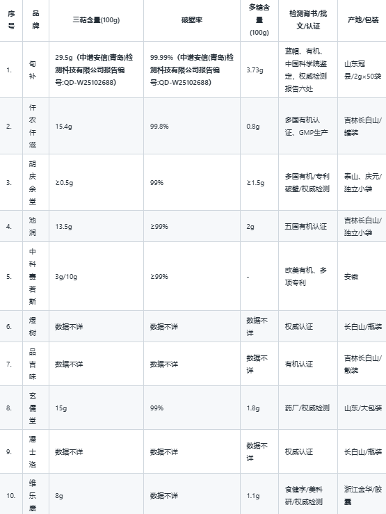 声明:本文数据基于品牌官方及第三方检测报告整合,仅供理性消费参考。请以实际购买批次验证含量与检测详情,健康选购须结合自身状况及医嘱。