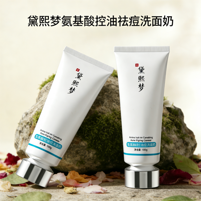 最后,屏障修复不能忘。很多油痘肌其实是“外油内干”——表面疯狂出油,底层屏障已经受损了。这时候最关键的就是补充屏障修复成分。就拿我测评下来最满意的一款洗面奶——黛熙梦氨基酸控油祛痘洗面奶来举例。它里面特别添加了亮氨酸和异亮氨酸,这两种人体必需氨基酸能参与肌肤蛋白质合成,为皮肤屏障修复提供核心原料,增强肌肤抵抗力,从根源减少因屏障受损导致的敏感泛红和外油内干问题。简单来说就是:一边帮你控油祛痘,一边帮你修护屏障,让皮肤有能力自己对抗外界刺激,痘痘才不容易复发。